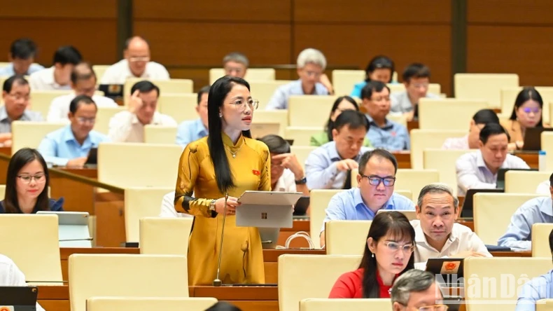Đại biểu Huỳnh Thị Phúc (Đoàn Bà Rịa-Vũng Tàu) phát biểu tại hội trường. (Ảnh: BÙI GIANG).