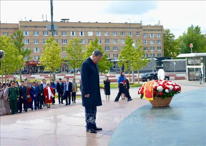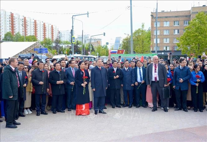 Trong khuôn khổ chuyến thăm chính thức Liên bang Nga và dự Lễ Kỷ niệm 80 năm Ngày Chiến thắng trong chiến tranh Vệ quốc vĩ đại, chiều tối 10/5 (giờ địa phương), Tổng Bí thư Tô Lâm và Phu nhân cùng Đoàn đại biểu cấp cao Việt Nam đã đến dâng hoa tại Tượng đài Chủ tịch Hồ Chí Minh, Quảng trường Hồ Chí Minh và dâng hoa tại bia lưu niệm ở Quảng trường Lê Duẩn, thủ đô Moskva, Liên bang Nga.