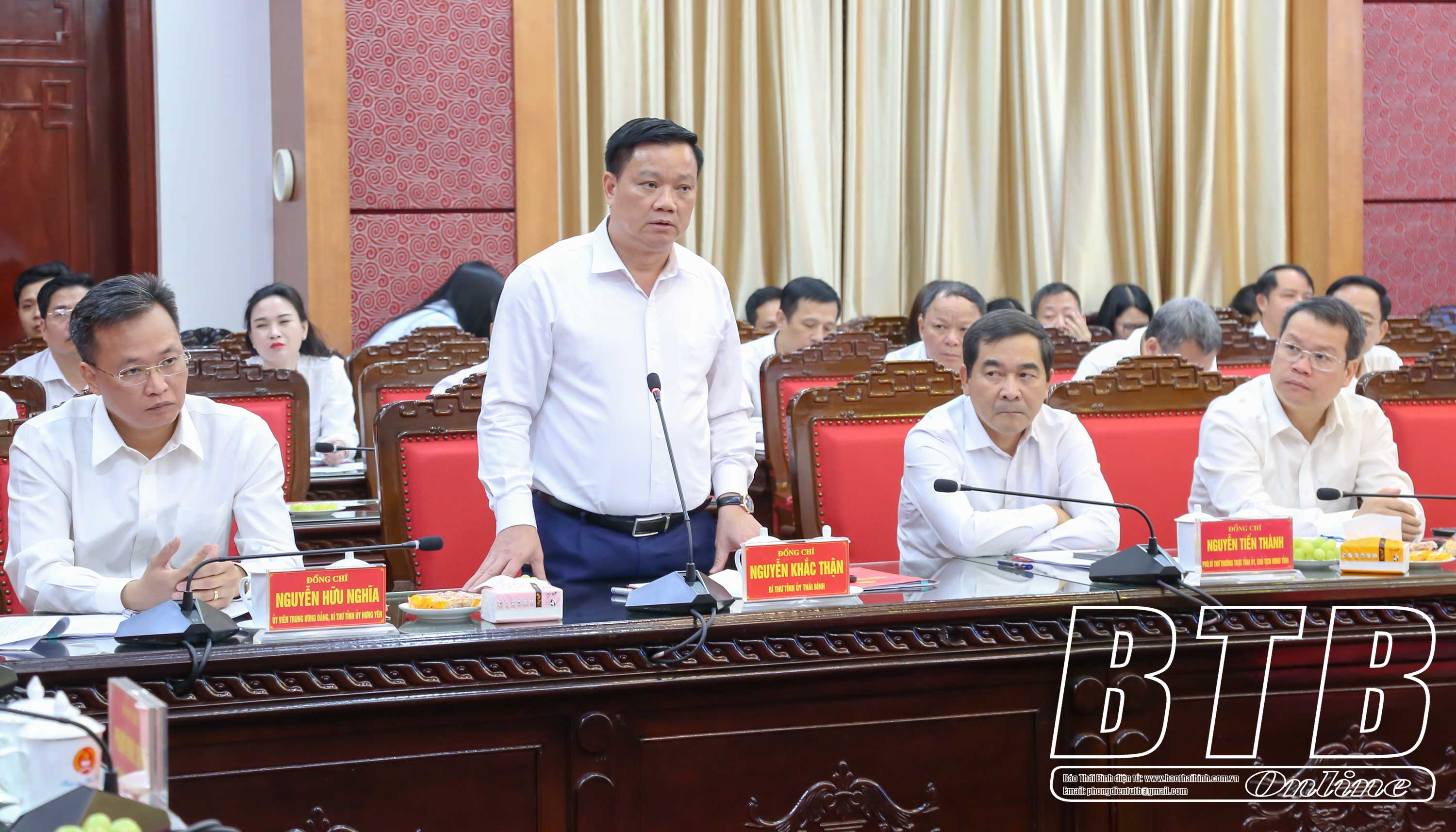 Thay mặt Tỉnh ủy, HĐND, UBND tỉnh, đồng chí Nguyễn Khắc Thận, Bí thư Tỉnh ủy khẳng định: Những chỉ đạo của Thủ tướng Chính phủ đã giúp Thái Bình nhìn rõ hơn những điểm nghẽn, hạn chế, đồng thời cũng thấy được những định hướng mới, tạo ra niềm tin cũng như quyết tâm, động lực phát triển trong thời gian tới. Đồng chí Bí thư Tỉnh ủy trân trọng cảm ơn sự quan tâm, chỉ đạo của Chính phủ, Thủ tướng Chính phủ và các bộ, ngành trung ương trong nhiều năm qua, từ đó giúp tỉnh có được những kết quả đáng ghi nhận trong phát triển kinh tế - xã hội, xây dựng Đảng và hệ thống chính trị. Thay mặt Đảng bộ, chính quyền và nhân dân Thái Bình, đồng chí Bí thư Tỉnh ủy hứa tiếp thu những ý kiến chỉ đạo của Thủ tướng chính phủ và sớm triển khai thành các nhiệm vụ, giải pháp cụ thể để tổ chức thực hiện, quyết tâm phát huy tinh thần tự lực, tự cường, thực hiện đồng bộ, quyết liệt các giải pháp phát triển đột phá kinh tế, xã hội của tỉnh như mong muốn của Thủ tướng Chính phủ. Thái Bình mong muốn tiếp tục nhận được sự quan tâm, giúp đỡ, hỗ trợ của Chính phủ, Thủ tướng Chính phủ, các ban, bộ, ngành trung ương để tỉnh thực hiện thắng lợi các mục tiêu phát triển kinh tế - xã hội đã đề ra, cùng cả nước bước vào kỷ nguyên mới - kỷ nguyên vươn mình của dân tộc Việt Nam.
