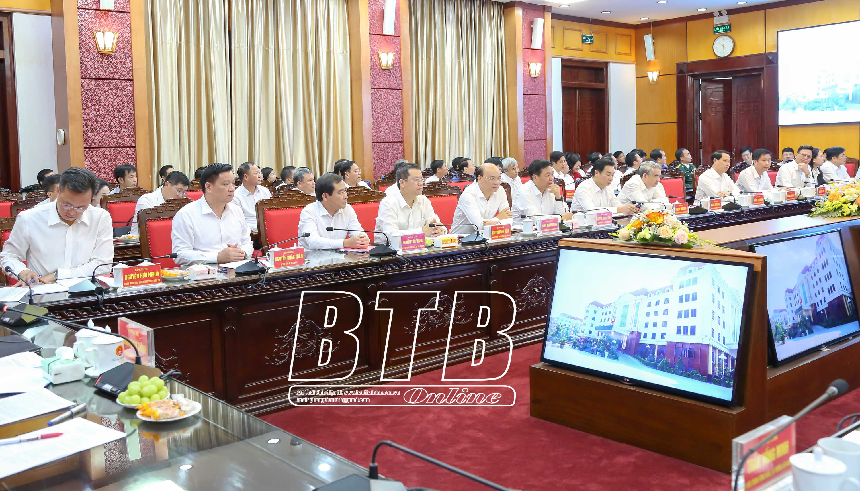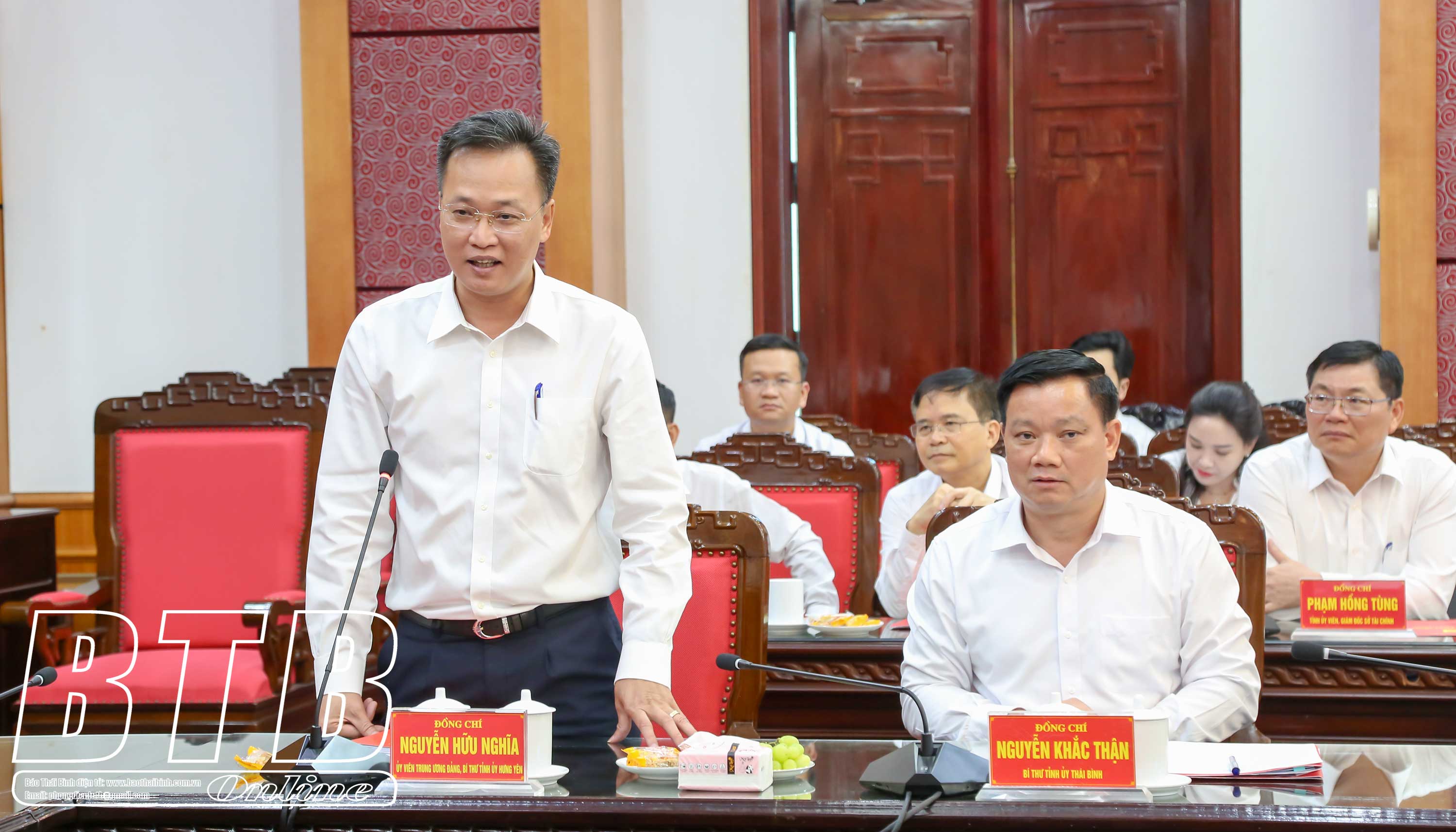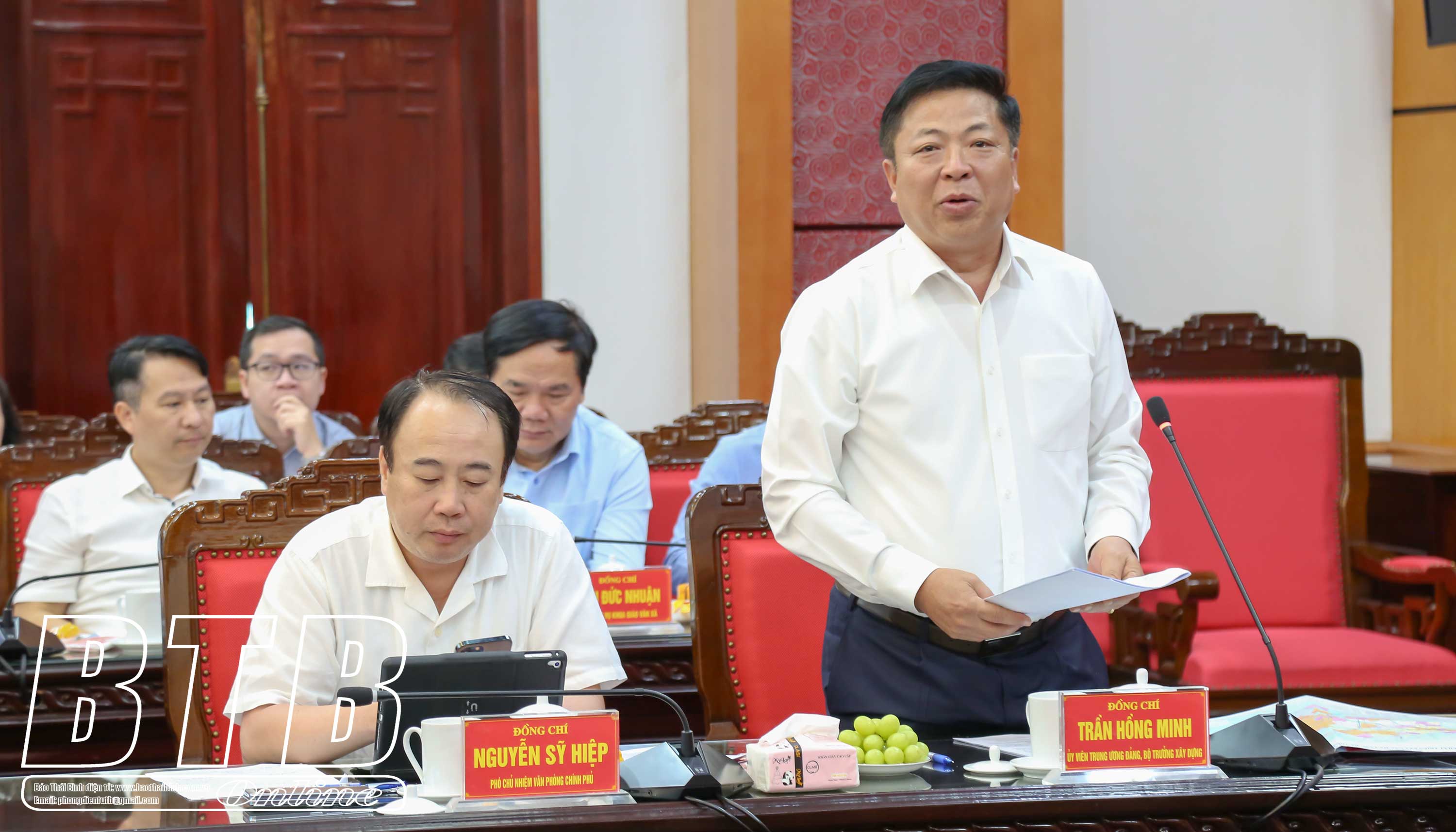 Dự buổi làm việc có các đồng chí: Trần Hồng Minh, Ủy viên Ban Chấp hành Trung ương Đảng, Bộ trưởng Bộ Xây dựng; Nguyễn Hữu Nghĩa, Ủy viên Ban Chấp hành Trung ương Đảng, Bí thư Tỉnh ủy Hưng Yên cùng lãnh đạo một số bộ, ngành trung ương. Về phía tỉnh Thái Bình có các đồng chí: Nguyễn Khắc Thận, Bí thư Tỉnh ủy; Nguyễn Tiến Thành, Phó Bí thư thường trực Tỉnh ủy, Chủ tịch HĐND tỉnh; Nguyễn Mạnh Hùng, Phó Bí thư Tỉnh ủy, Chủ tịch UBND tỉnh; các đồng chí Ủy viên Ban Thường vụ Tỉnh ủy; Ủy viên Ban Chấp hành Đảng bộ tỉnh; lãnh đạo HĐND, UBND tỉnh, Đoàn đại biểu Quốc hội tỉnh; một số sở, ngành, đơn vị và địa phương.