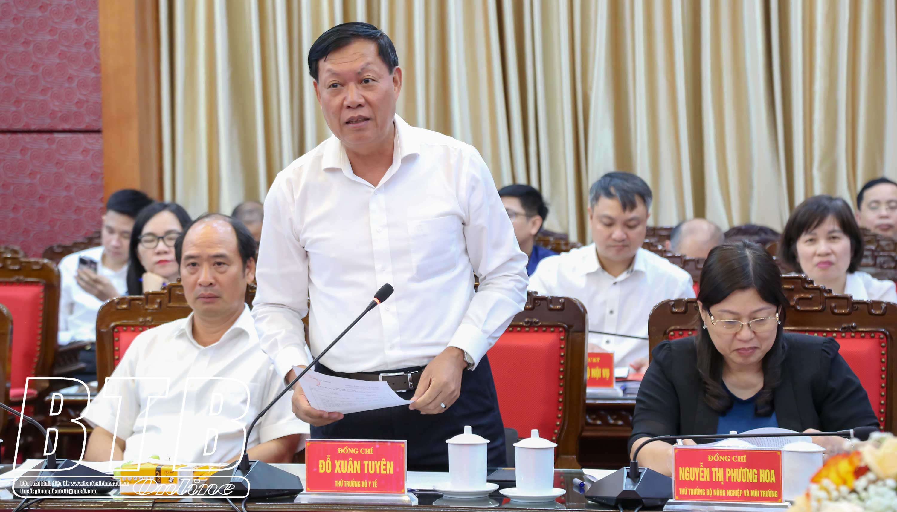 Trên cơ sở đó, đại biểu các bộ, ngành Trung ương đã phát biểu, gợi mở các nhiệm vụ, giải pháp, cách làm, hướng đi để Thái Bình phát triển đột phá trong thời gian tới như: Khai thác thế mạnh của tỉnh để phát triển lĩnh vực y tế, giáo dục đào tạo; phát triển giao thông đường thủy, đường vành đai ven biển; nghiên cứu, triển khai các dự án quy hoạch quai đê, lấn biển để mở rộng không gian, phát triển công nghiệp; chú trọng phát triển công nghiệp năng lượng; giải quyết việc làm cho người lao động, thực hiện các chính sách an sinh xã hội trên địa bàn.