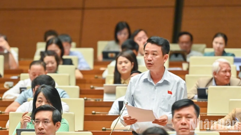 Đại biểu Trần Quang Minh (Đoàn Quảng Bình) phát biểu ý kiến tại hội trường. (Ảnh: BÙI GIANG).