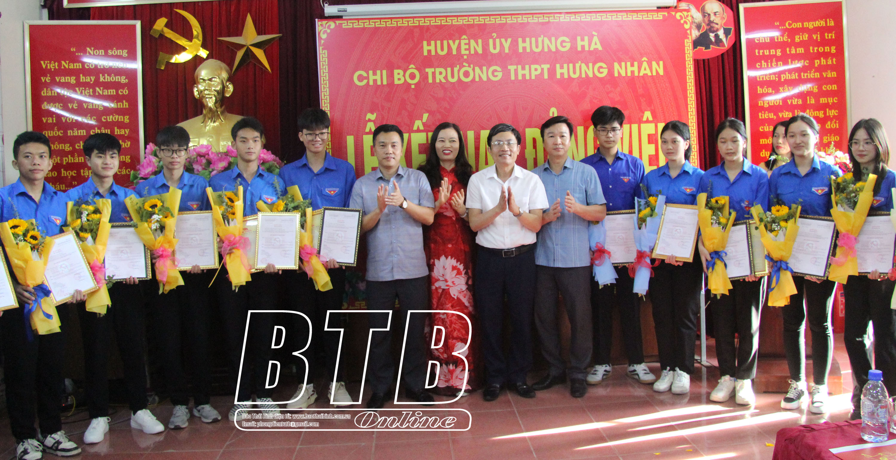 Nhân dịp kỷ niệm 135 năm ngày sinh Chủ tịch Hồ Chí Minh (19/5/1890 - 19/5/2025), chiều ngày 19/5, Chi bộ Trường THPT Bắc Duyên Hà, Chi bộ Trường THPT Hưng Nhân và Chi bộ Trường THPT Trần Thị Dung (Hưng Hà) tổ chức lễ kết nạp đảng viên cho đoàn viên ưu tú là học sinh lớp 12 năm học 2024 - 2025 khi tròn 18 tuổi.