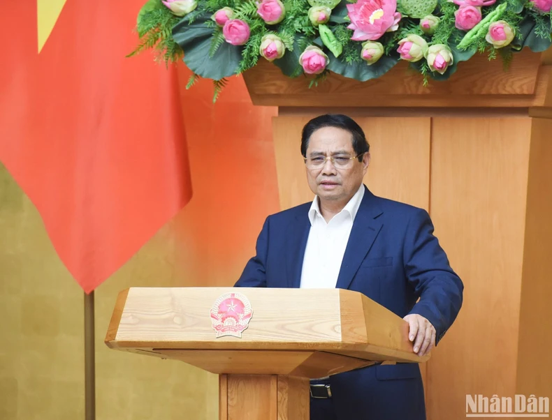 Thủ tướng Phạm Minh Chính chủ trì phiên họp Chính phủ chuyên đề xây dựng pháp luật tháng 5/2025. (Ảnh: TRẦN HẢI).