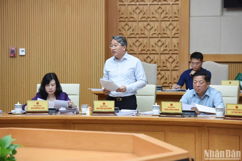 Bộ trưởng Tư pháp Nguyễn Hải Ninh phát biểu ý kiến tại phiên họp. (Ảnh: TRẦN HẢI).