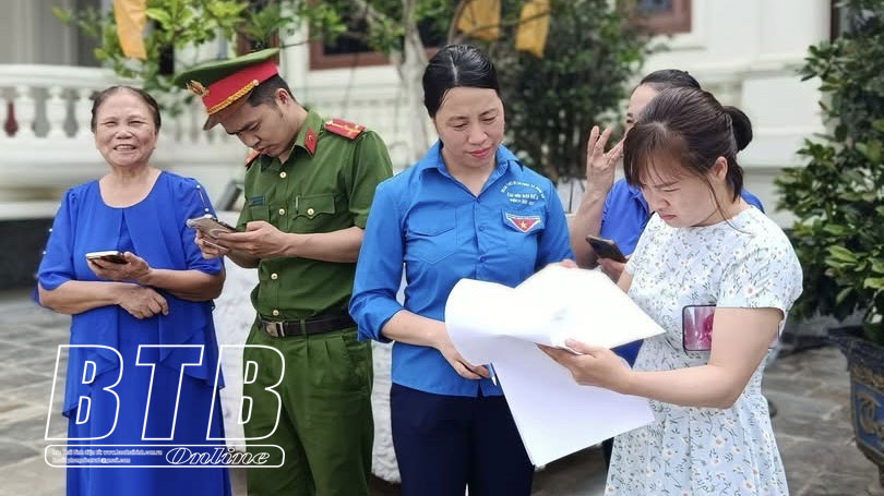 Đoàn Thanh niên huyện Hưng Hà huy động đoàn viên, thanh niên hướng dẫn người dân góp ý trên ứng dụng VNeID.