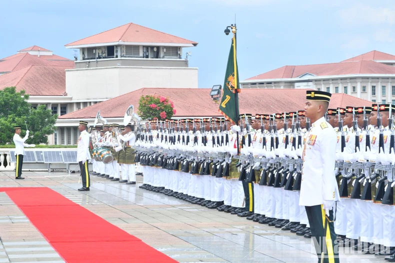 Đội danh dự Quân đội Malaysia chuẩn bị đón Thủ tướng Phạm Minh Chính và Phu nhân cùng Đoàn đại biểu cấp cao Việt Nam (Ảnh: THANH GIANG).