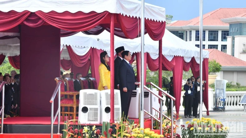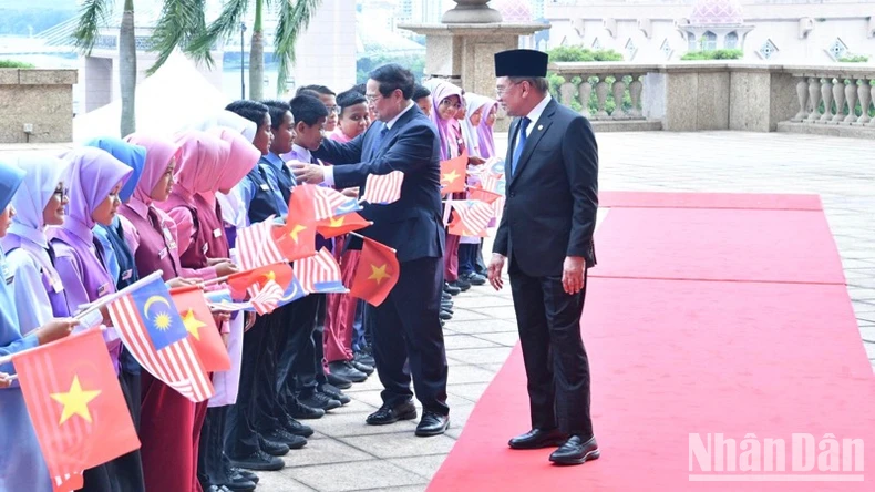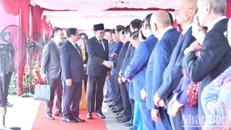 Chiều 25/5, tại Quảng trường Perdana trước Phủ Thủ tướng ở thủ đô hành chính Putrajaya, Thủ tướng Malaysia Anwar Ibrahim và Phu nhân chủ trì lễ đón Thủ tướng Phạm Minh Chính và Phu nhân cùng Đoàn đại biểu cấp cao Việt Nam thăm chính thức Malaysia với nghi thức trọng thể.
