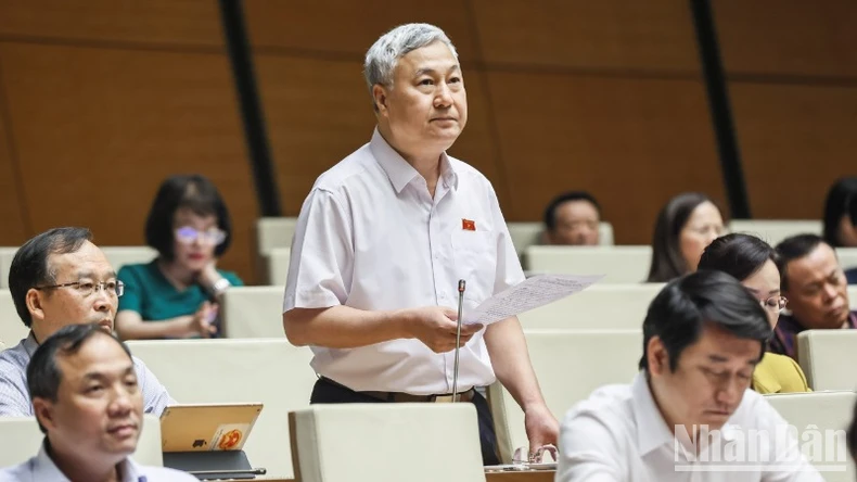 Đại biểu Trần Văn Lâm (Đoàn Bắc Giang) phát biểu. (Ảnh: DUY LINH).