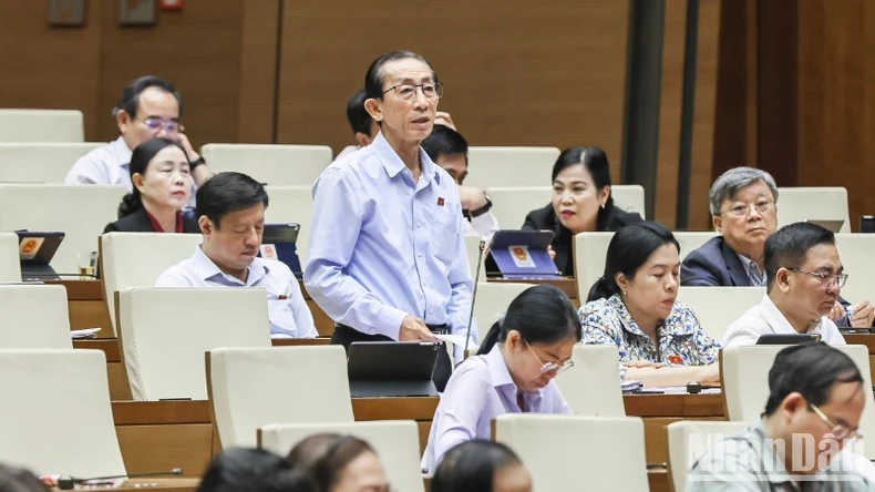 Đại biểu Trần Hoàng Ngân (Thành phố Hồ Chí Minh) phát biểu. (Ảnh: DUY LINH).