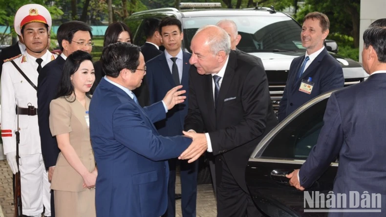Trong không khí hữu nghị và tin cậy, Thủ tướng đã chia sẻ, Việt Nam từ một đất nước bị chiến tranh tàn phá, bị bao vây, cấm vận và phải đối mặt với nhiều khó khăn, đã vươn lên phát triển với nhiều thành tựu nổi bật về kinh tế-xã hội; quy mô GDP đã đạt 473 tỷ USD năm 2024, thu nhập bình quân đầu người tiệm cận mức trung bình cao của thế giới, chỉ số hạnh phúc tăng 11 bậc năm 2024 và tăng 8 bậc trong năm nay.