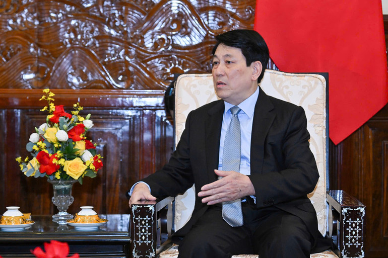 Chủ tịch nước Lương Cường phát biểu tại buổi tiếp.