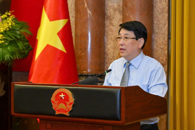 Chủ tịch nước Lương Cường phát biểu tại buổi gặp mặt.
