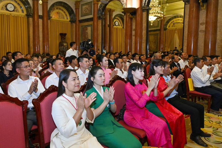 Cùng dự buổi gặp mặt có Phó Thủ tướng Chính phủ Mai Văn Chính; Chủ nhiệm Văn phòng Chủ tịch nước Lê Khánh Hải; đại diện lãnh đạo một số ban, bộ, ngành Trung ương; lãnh đạo Hiệp hội Làng nghề Việt Nam và các nghệ nhân tiêu biểu cả nước.