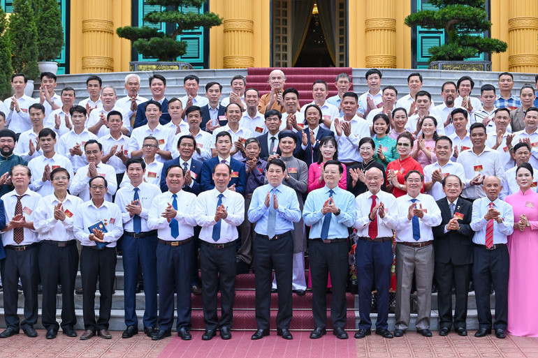 Chủ tịch nước Lương Cường gặp mặt các nghệ nhân làng nghề tiêu biểu toàn quốc.