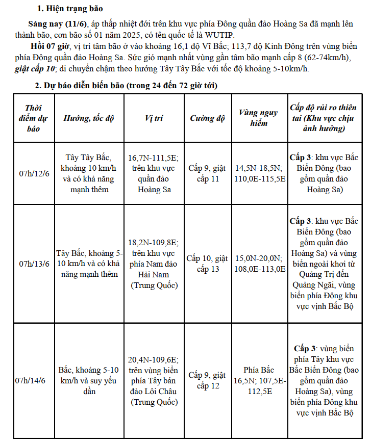 Tin bão trên biển Đông (Cơn bão số 1)
