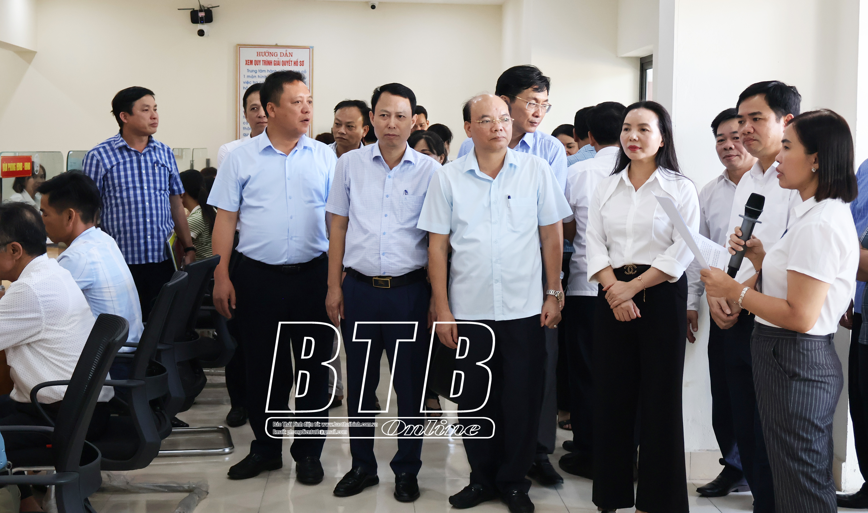 Các đồng chí lãnh đạo tỉnh tham quan, kiểm tra trang thiết bị và công tác vận hành Trung tâm phục vụ hành chính công xã Tiền Hải.