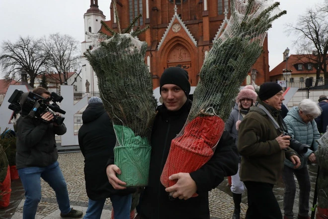Người dân mua cây thông Noel tại Bialystok, Ba Lan.