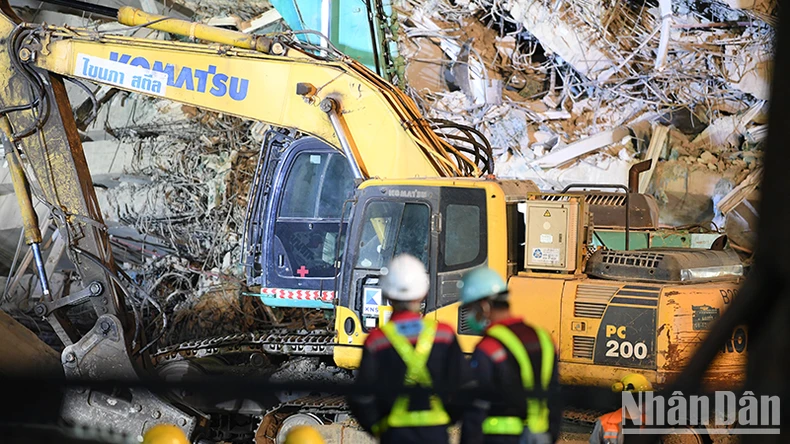 Tòa nhà 30 tầng sụp đổ nhanh chóng trong trận động đất ngày 28/3 đã tạo thành một đống bê tông, sắt thép khổng lồ, cao hơn tòa nhà 5 tầng. Thái Lan đã qua thời gian vàng 72 tiếng tìm kiếm, tuy nhiên công tác cứu hộ, cứu nạn vẫn tiếp tục được tiến hành.