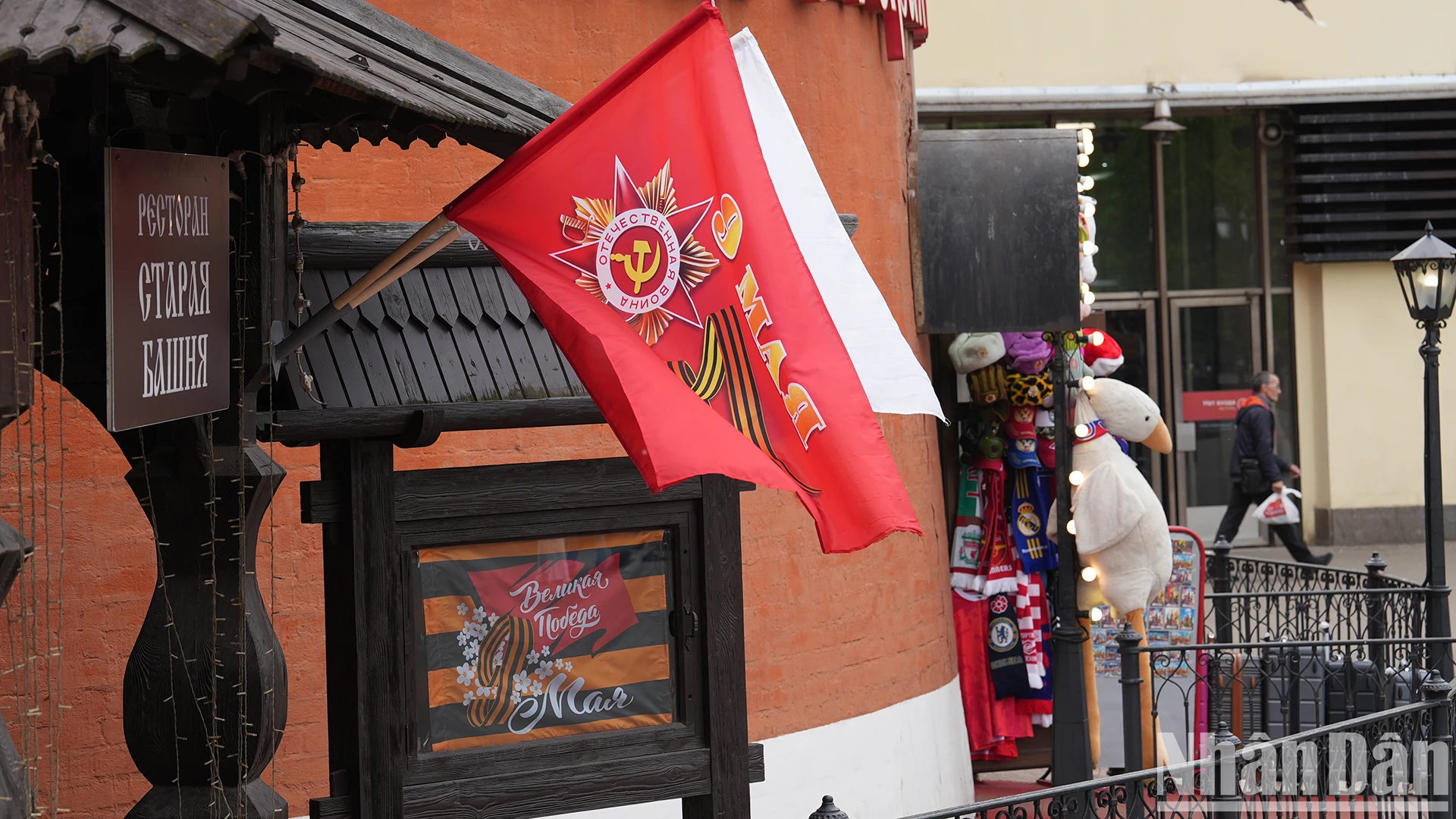 Những ngày này, nhiều cửa hàng trên đường phố Moskva treo cờ, băng rôn chiến thắng và bán những món quà lưu niệm đầy đủ màu sắc, tạo những điểm nhấn khác biệt so với những ngày thường.