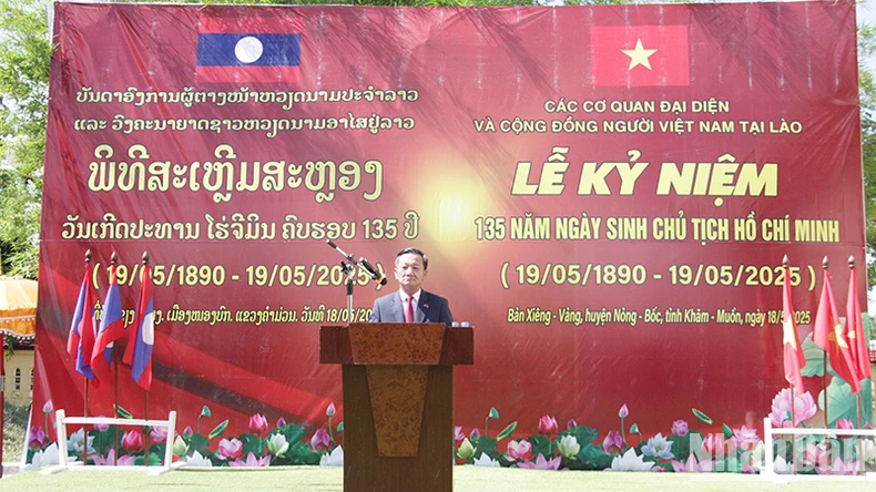 Chiều 18/5, tại Khu lưu niệm Chủ tịch Hồ Chí Minh ở bản Xiengvang, huyện Nongbok, tỉnh Khammouane, Trung Lào, Đại sứ quán Việt Nam tại Lào cùng các cơ quan đại diện, cộng đồng người Việt Nam tại Lào trang trọng tổ chức Lễ kỷ niệm 135 năm Ngày sinh Chủ tịch Hồ Chí Minh (19/5/1890-19/5/2025).