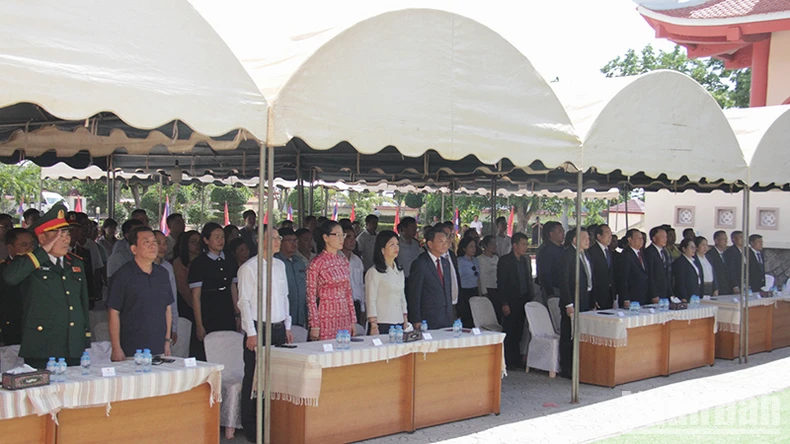 Tham dự buổi lễ có Đại sứ Việt Nam tại Lào Nguyễn Minh Tâm; đại diện Tổng Lãnh sự quán Việt Nam tại Savannakhet; lãnh đạo chính quyền tỉnh Khammouane; đại diện Tổng hội người Việt Nam tại Lào cùng đông đảo bà con kiều bào và cán bộ, nhân viên các cơ quan bên cạnh Đại sứ quán Việt Nam tại Lào.