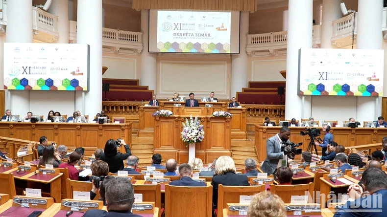 Phó Chủ tịch Quốc hội Lê Minh Hoan phát biểu tại phiên toàn thể Đại hội Sinh thái quốc tế Nevsky lần thứ 11 tại Saint Petersburg.