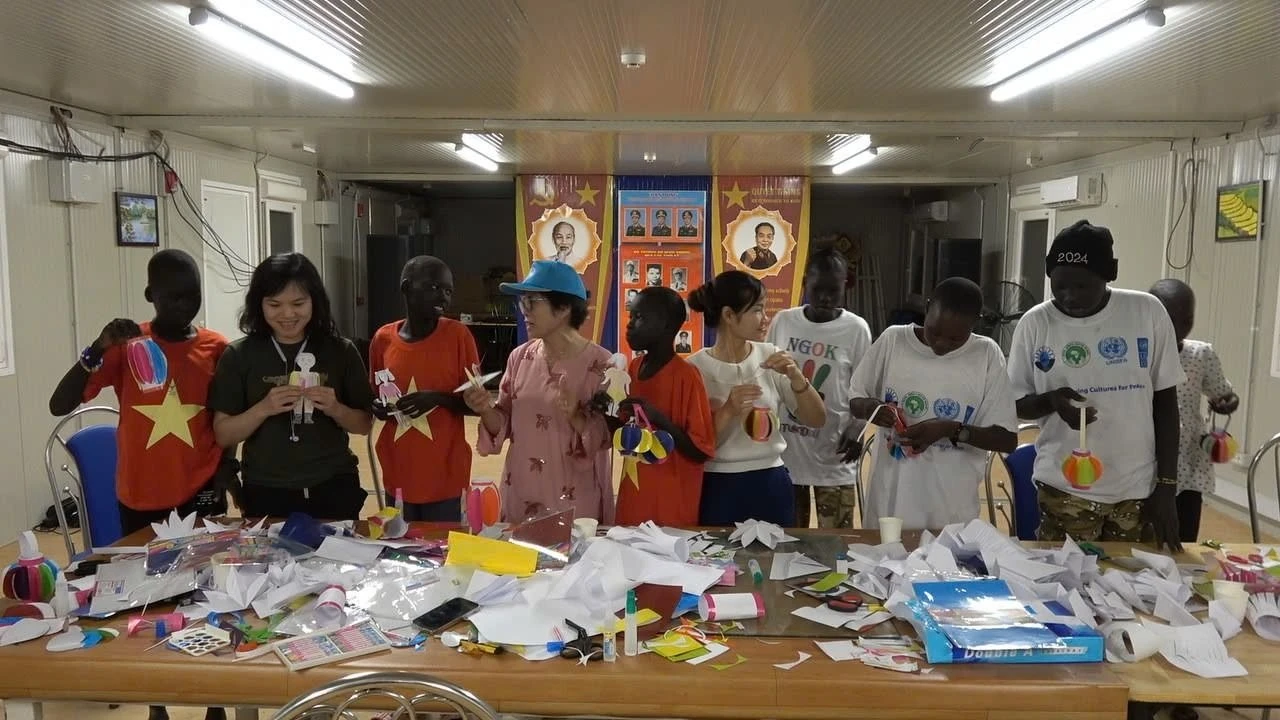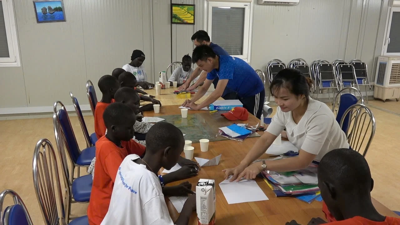 Dưới bàn tay khéo léo của các em và sự hướng dẫn sáng tạo của các chiến sĩ Việt Nam, giấy báo cũ, vỏ chai nhựa, bao nylon, vỏ lon đã biến thành những con diều, chong chóng, xe đồ chơi, chiếc thuyền, con vật... Hoạt động này không chỉ góp phần bảo vệ môi trường mà còn khơi gợi trí tưởng tượng sáng tạo và niềm hứng thú cho các em.