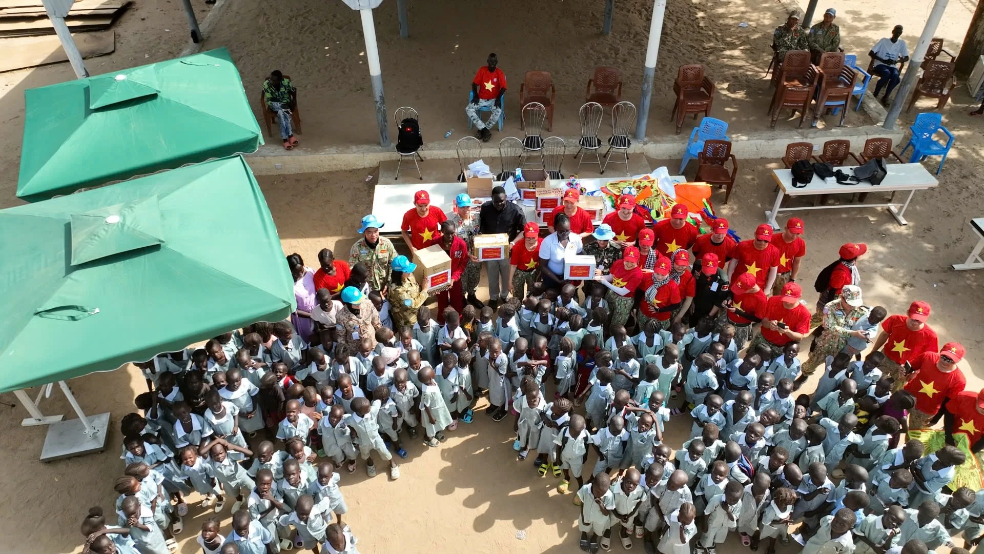 Gần đến Ngày Quốc tế Thiếu nhi, mặc dù bận rộn với nhiều nhiệm vụ quan trọng như nâng cấp đường sá, sửa chữa sân bay trực thăng, xây dựng doanh trại thông minh và chuẩn bị các nội dung phục vụ kiểm tra năng lực toàn diện của Liên hợp quốc, những người lính Mũ nồi xanh Việt Nam Đội Công binh số 3 vẫn không quên những em nhỏ người địa phương.