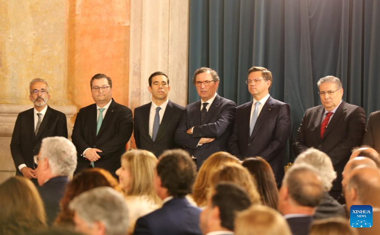 Các bộ trưởng trong nội các mới của Bồ Đào Nha tham dự lễ nhậm chức của chính phủ mới tại Lisbon. (Ảnh: Tân Hoa xã)