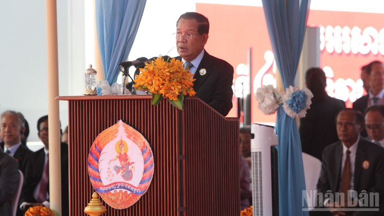 Chủ tịch CPP Hun Sen phát biểu ý kiến tại lễ kỷ niệm.