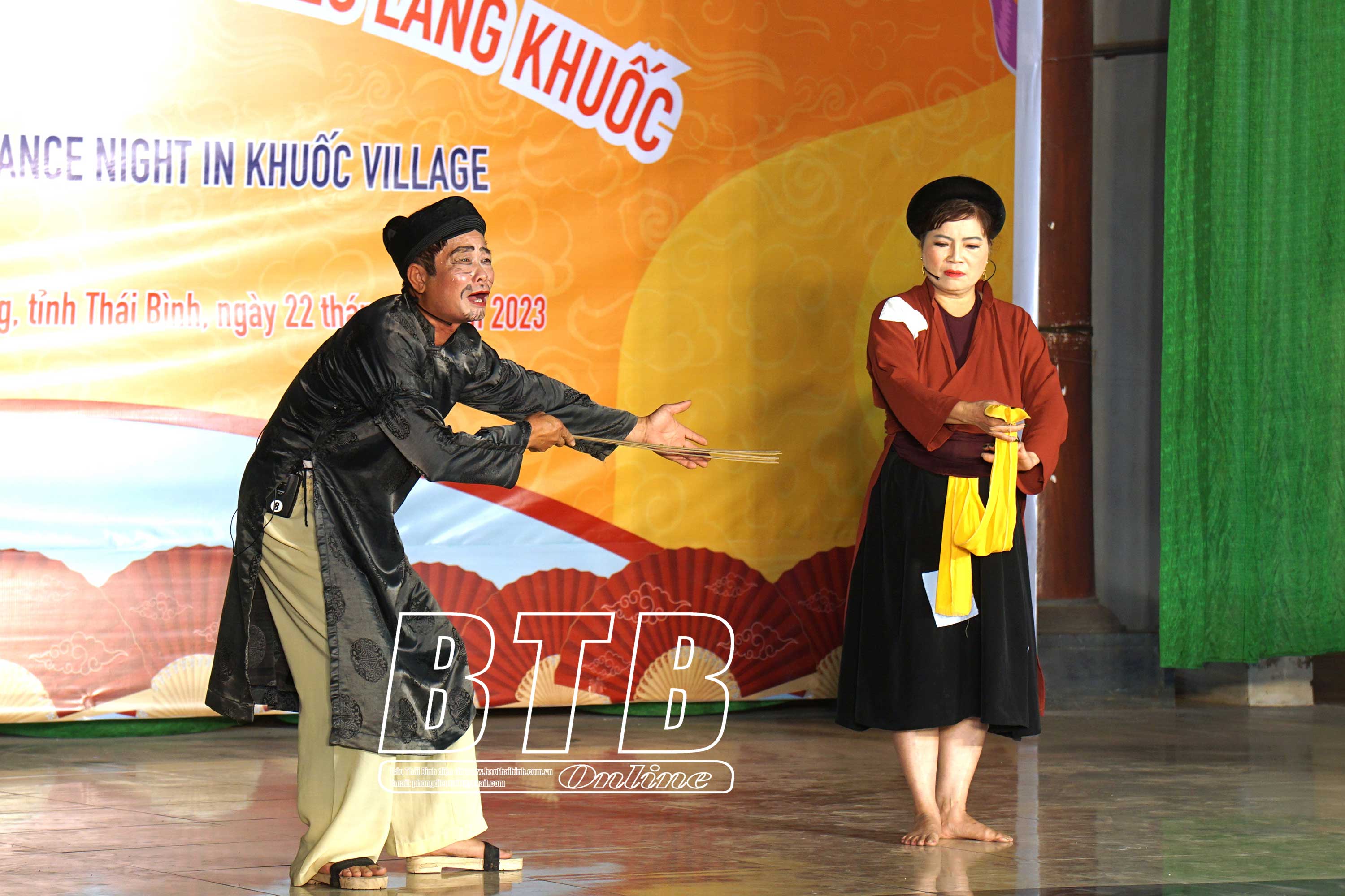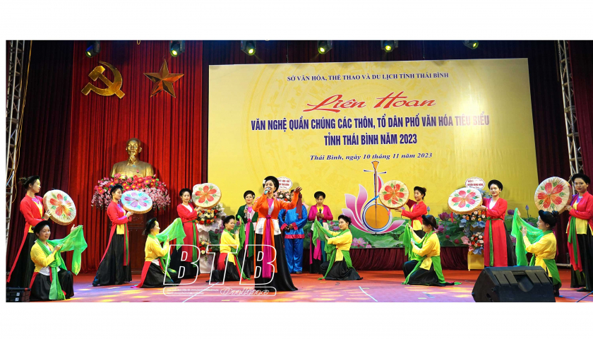 Câu lạc bộ chèo thôn Khuốc Tây, xã Phong Châu (Đông Hưng) biểu diễn tại liên hoan văn nghệ quần chúng các thôn, tổ dân phố văn hóa tiêu biểu.