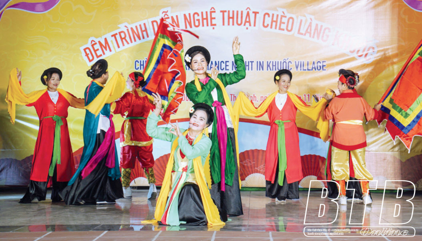 Nghệ nhân làng chèo Khuốc biểu diễn những làn điệu đặc sắc của quê hương. Ảnh: Anh Tú