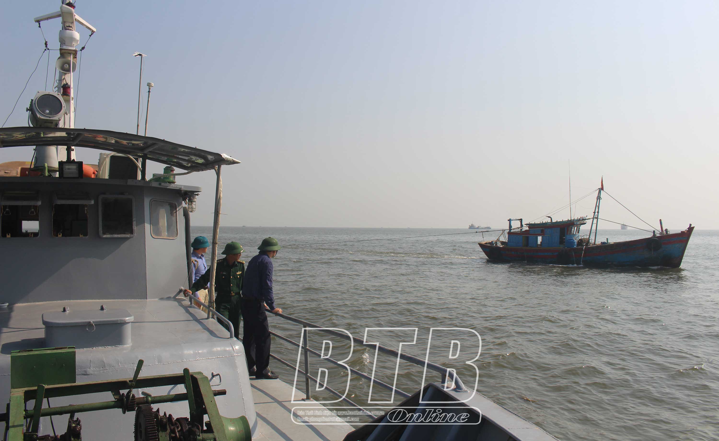 Tàu cá của ngư dân huyện Thái Thụy đang khai thác hải sản trên biển.