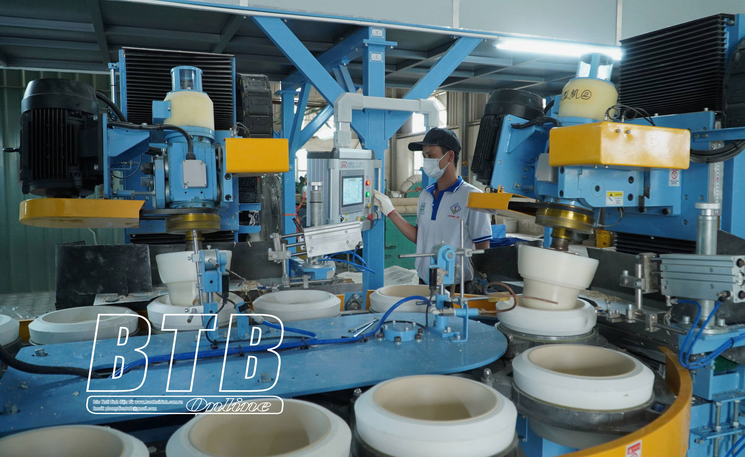 Môi trường đầu tư, kinh doanh của huyện Tiền Hải ngày càng được cải thiện giúp doanh nghiệp phát triển sản xuất, kinh doanh hiệu quả. Trong ảnh: Sản xuất tại Công ty Cổ phần Gốm sứ Long Hầu.