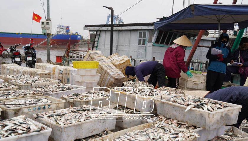 Những ngày này, cảng cá Tân Sơn, thôn Quang Lang, xã Thụy Hải nhộn nhịp tàu thuyền ra vào bến.