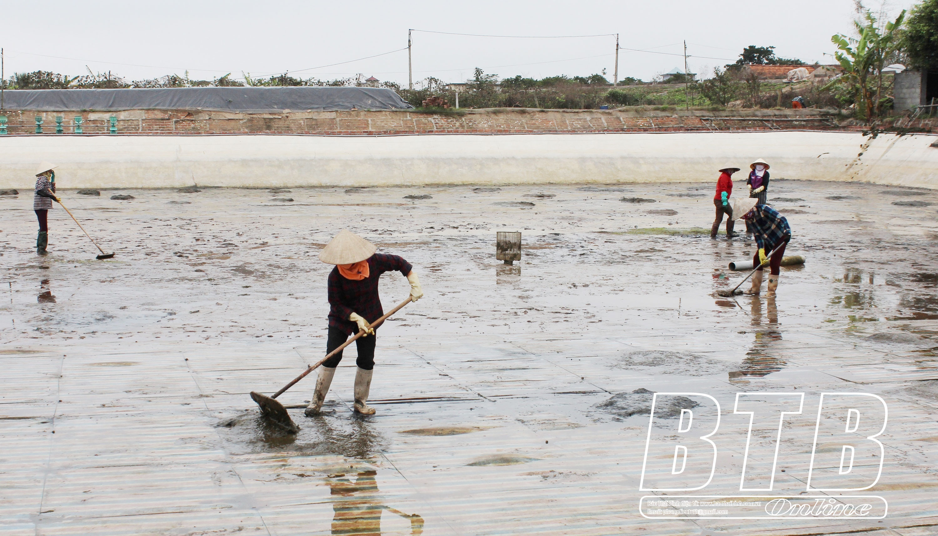 Các hộ dân xã Nam Cường (Tiền Hải) tập trung cải tạo ao đầm chuẩn bị xuống giống thủy sản vụ xuân hè.