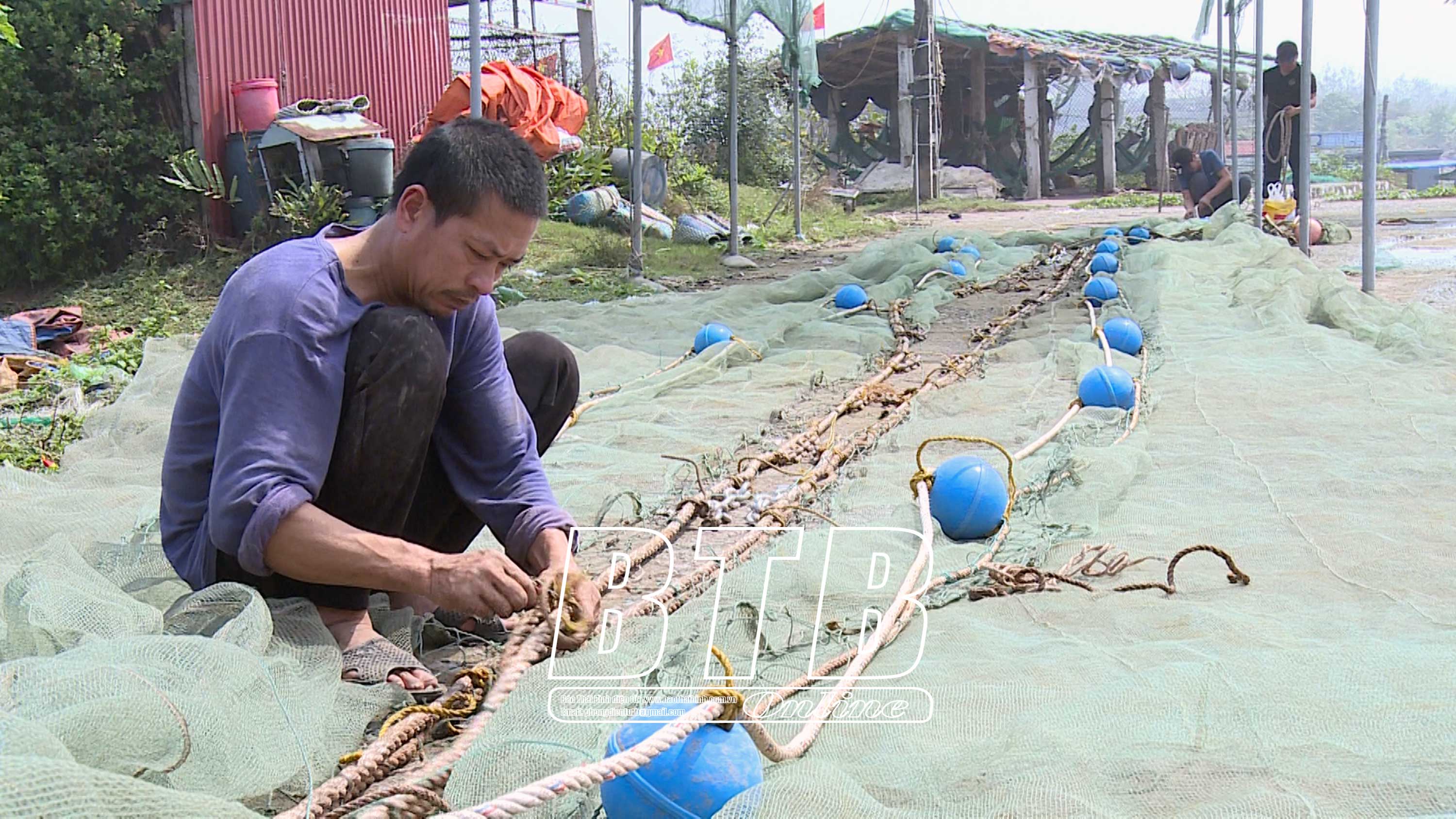 Ngư dân huyện Thái Thụy chuẩn bị ngư lưới cụ ra khơi đánh bắt hải sản.