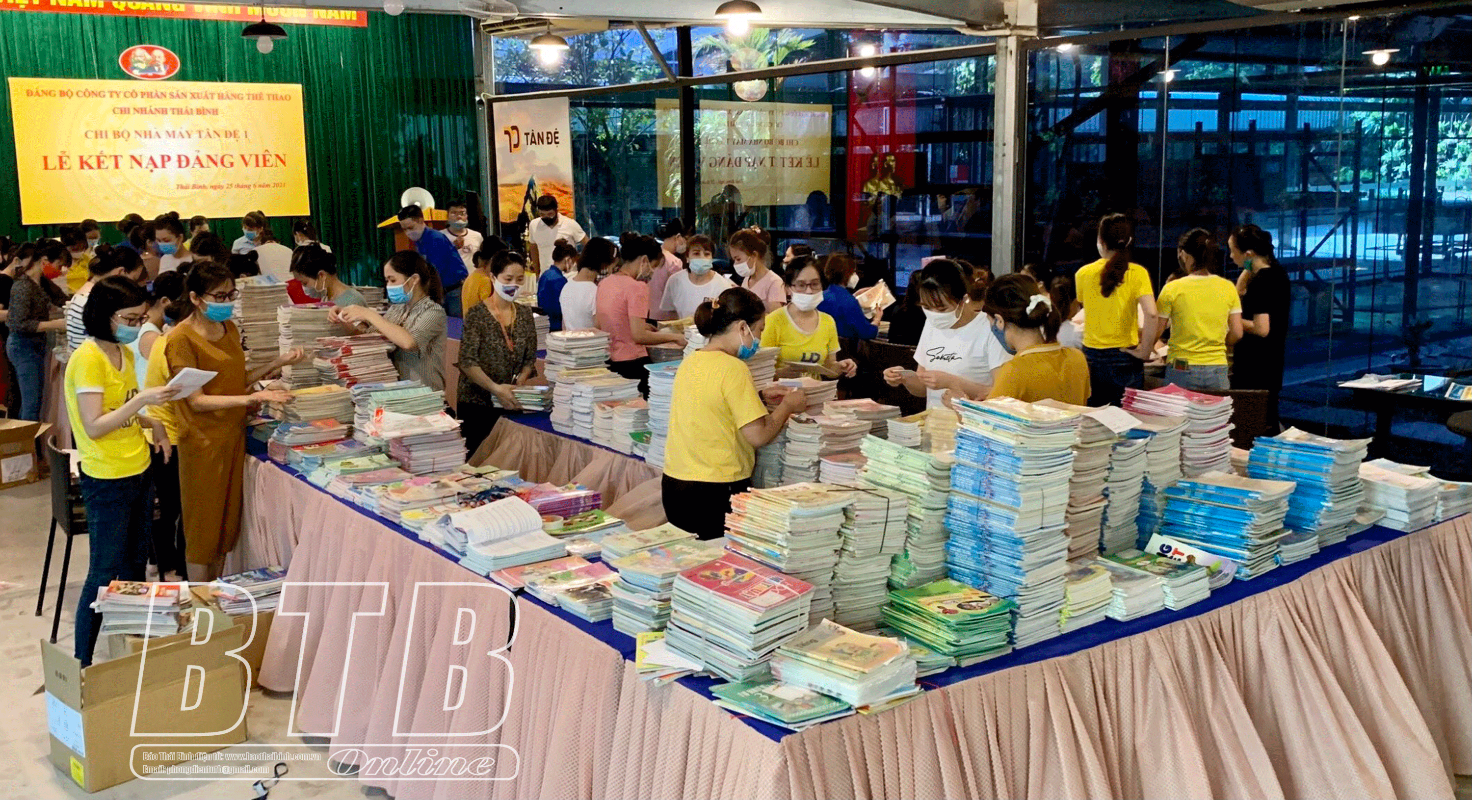 Người lao động Công ty Tân Đệ hưởng ứng xây dựng “Tủ sách yêu thương”.