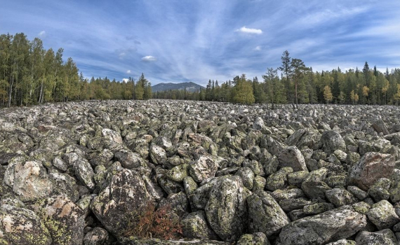 Sông đá khổng lồ này được cho là hình thành cách đây 10.000 năm. Giới nghiên cứu cho rằng, vào thời điểm đó, các sông băng bao phủ đỉnh của các rặng Taganay ở độ cao tới 4.800 m. Dưới sức nặng của những sông băng này, đỉnh núi bị nghiền thành hàng triệu tảng đá lớn. Khi băng tan đi, những mảng đá từ từ trượt xuống, tạo ra sông đá lớn. Ảnh: Mountainsfoto