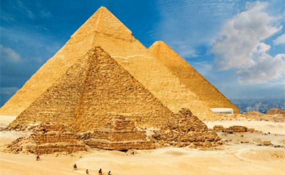 Kim tự tháp Giza(sa mạc Al Giza, Ai Cập)là một trong 7 kỳ quan thế giới cổ đại và được UNESCO xếp hạng Di sản thế giới vào năm 1979. Quần thể kiến trúc này bao gồm tượng nhân sư và lăng mộ của 3 Pharaoh (Cheops, Khafre và Menkaure). Trong đó, kim tự tháp Cheops (Khufu) cao 146 m, với 2,5 triệu khối đá vôi xếp chồng lên nhau.