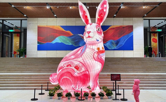 Đèn lồng thỏ khổng lồ trang trí mừng năm mới tại một bảo tàng ở Thủ đô Bắc Kinh, Trung Quốc. Ảnh: Getty