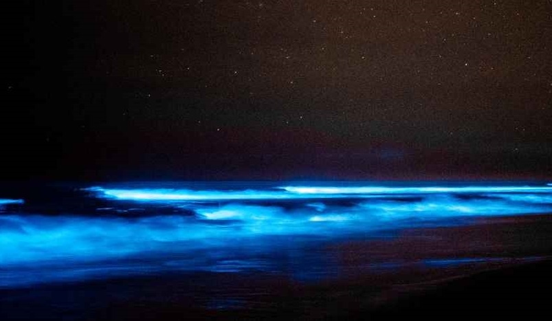 Bãi biển Mattu, Udupi, Karnataka, Ấn Độ: Nằm cách Udupi 10 km, bãi biển Mattu là một điểm đến hẻo lánh được biết đến có hiện tượng phát sáng trong đêm. Hiện tượng phát quang sinh học do vi sinh vật có tên Noctiluca tạo ra. Loài tảo hai roi này sống ở biển và phát ra ánh sáng xanh khi bị quấy rầy.
