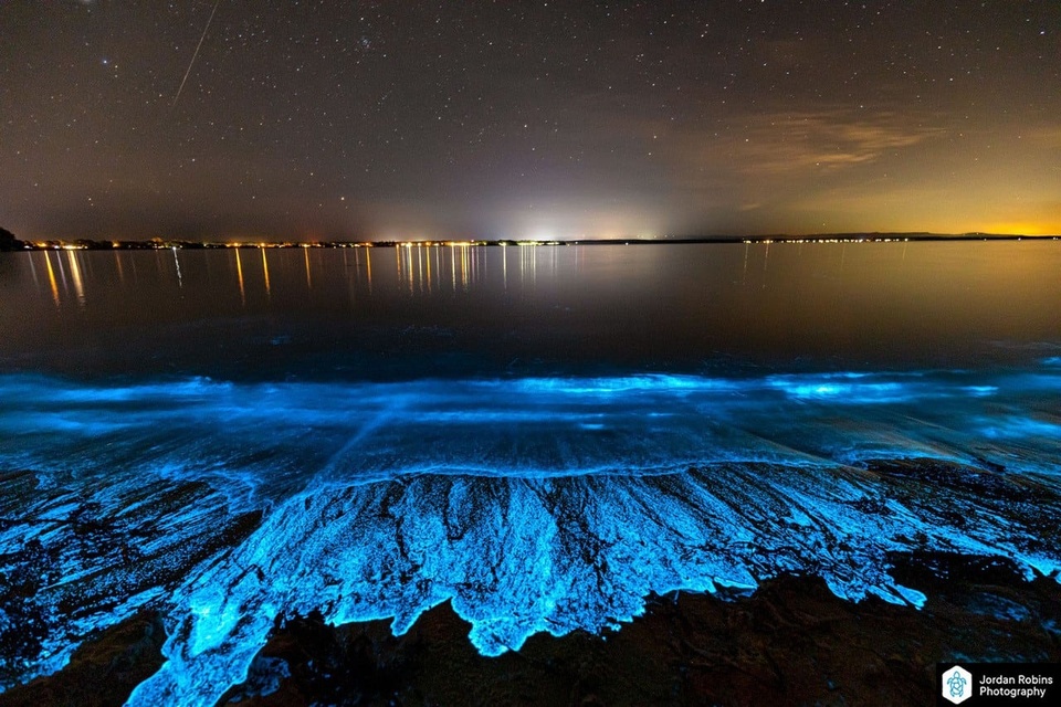 Vịnh Jervis, Australia: Vịnh Jervis ở Australia nổi tiếng với nhiều điều hấp dẫn như cát trắng, làn nước trong vắt và hoạt động ngắm cá voi. Ngoài ra, những lớp sóng màu xanh neon tuyệt đẹp trong bóng tối cũng là cảnh tượng du khách nên khám phá. Ánh sáng xanh kỳ diệu trên từng lớp sóng đó được tạo ra bởi các vi sinh vật phù du.