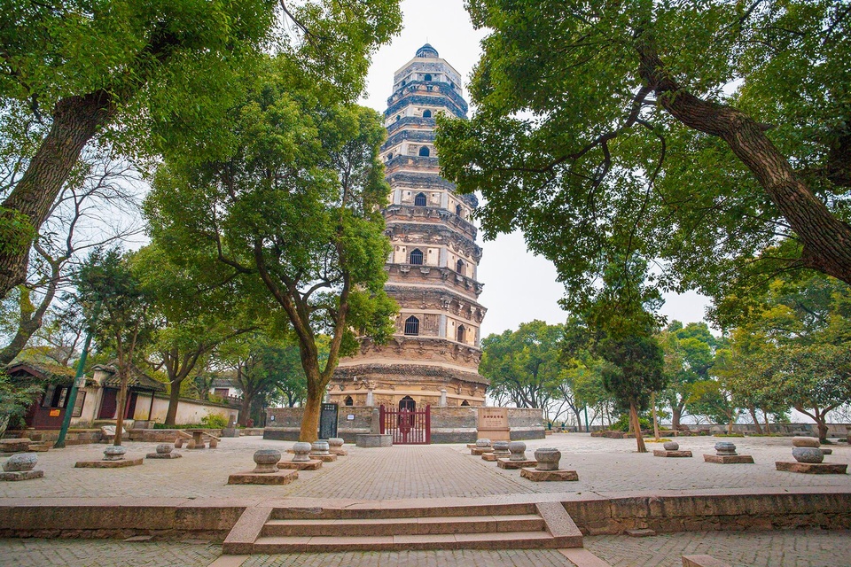 Chùa Đồi Hổ, Trung Quốc: Nằm trên một đỉnh đồi ở Tô Châu, Giang Tô, ngôi chùa hơn 1.000 năm tuổi, được hoàn thành vào năm 961 đầu triều đại Bắc Tống. Với một nửa nằm trên mỏm đá và một nửa nằm trên đất mềm hơn, chùa Đồi Hổ bắt đầu nghiêng vào thời nhà Minh (1368-1644). Công trình 7 tầng, được làm bằng gạch, cao 47,5 m và ước tính nghiêng một góc 3,5 độ.