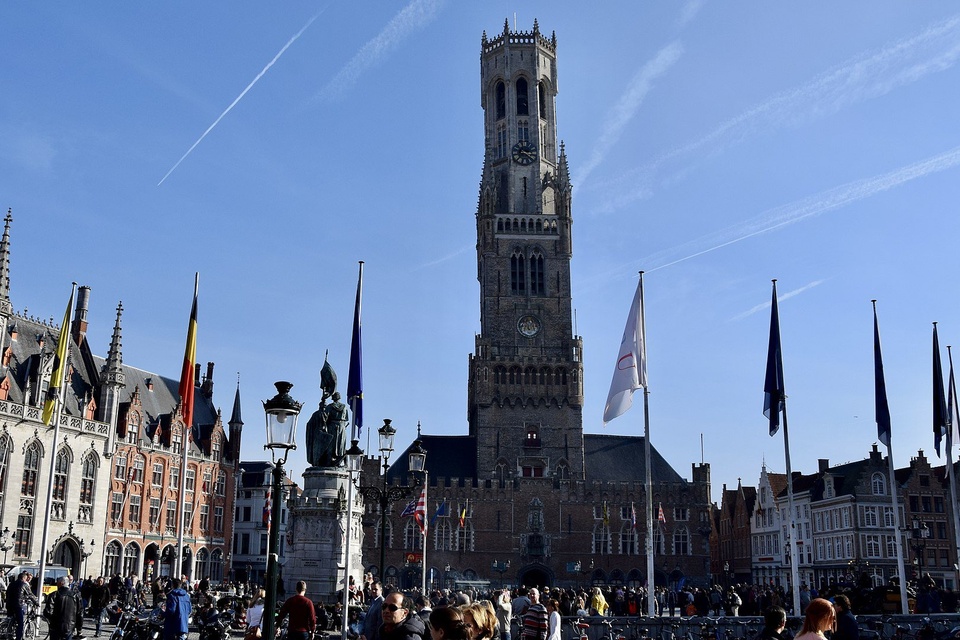 Tháp chuông Bruges, Bỉ: Một trong những điểm tham quan ngoạn mục nhất ở Bruges là tháp chuông thời trung cổ cao vút nhìn ra quảng trường. Tòa tháp nghiêng cả mét về phía đông. Du khách có thể leo 366 bậc thang lên đỉnh để ngắm nhìn toàn cảnh thành phố.