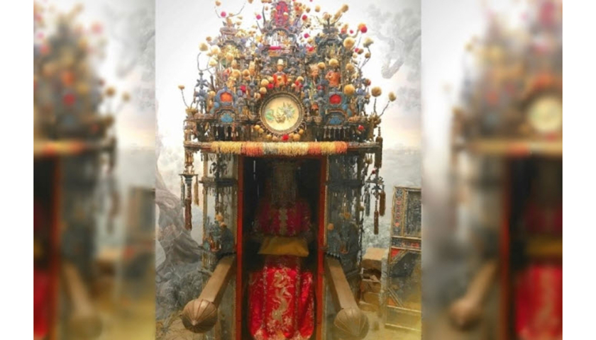 "Từ khi mặc váy cưới đến lúc ngồi lên kiệu hoa về nhà chồng, chân của tân nương không được phép chạm đất, nếu không sẽ gặp vận xui trong tương lai. Đỡ tân nương xuống kiệu phải là người phụ nữ có chồng và nhiều con trai", bảng giới thiệu về phong tục rước dâu bằng kiệu hoa ở Trung Quốc trong bảo tàng Tự nhiên Mỹ có đoạn.