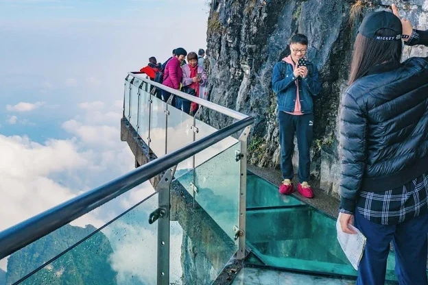 Cầu kính East Taihang Glasswalk ở Hà Bắc, Trung Quốc khiến nhiều người sợ hãi vì hiệu ứng "giả vỡ" quá chân thật.