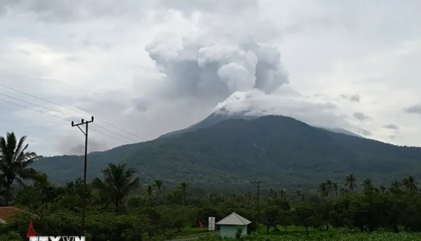 Núi lửa Lewotobi Laki-Laki ở Đông Flores, tỉnh Đông Nusa Tenggara, Indonesia (Ảnh: THX/TTXVN)