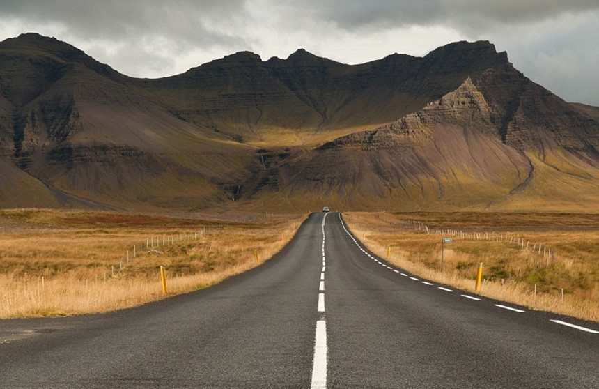 Snaefellsjokull, Iceland: Trong ảnh là con đường thẳng ấn tượng dẫn đến núi lửa Snaefellsjokull kỳ vĩ tọa lạc trong công viên quốc gia cùng tên nằm ở phần phía tây của bán đảo Snaefellsnes, Iceland. Ảnh: Carloz G.Lope.